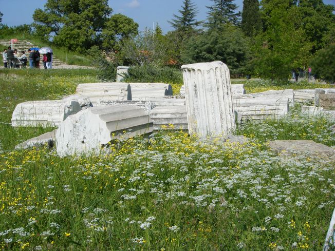 右)大劇場 約1万人が収容可能。奥に広がる市街地をみていただけると、アクロポリスがとても高いところに位置しているのがわかってもらえるかと思います。