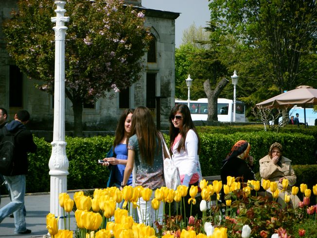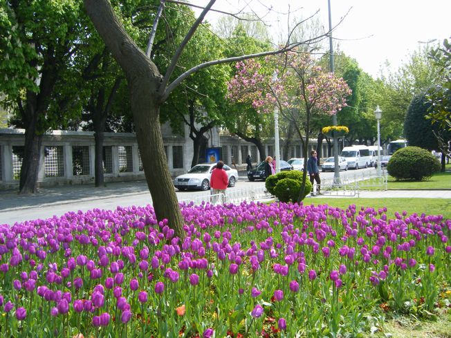 春の短いイスタンブール。チューリップが咲いているのは一年で2~3週間だそうで、ガイドさんは、私たちがイスタンブールに入るころにはとっくに散っているだろうとおもっていたらしいんだけど、寒の戻りや天候の悪さに助けられ、私たちをまっていてくれたのでした。