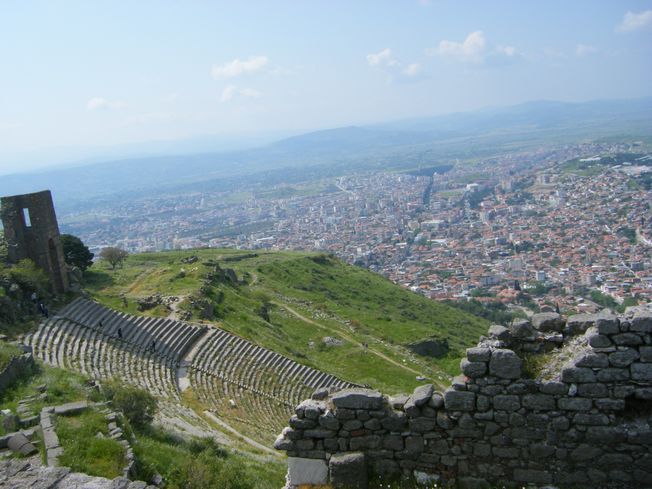 ペルガモン遺跡のうち、アクロポリスは高い高い、標高333mの丘の上にあるのですが、丘の斜面を利用した都市構造になっていて、大劇場は丘の斜面を観客席として、ステージは真上から見下ろすような構造になっていました。よくこんなところまで、大理石を運んだもんです・・・