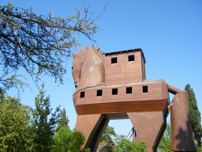 ホメロスの詩「イリアス」に出てくる伝説上の都市とされていたトロイですが、1870年にドイツのシュリーマンが発掘した。紀元前3000ごろに最初の集落ができて、紀元400年ごろまで続いたそうな。ちなみにシュリーマンが発掘しドイツに持ち帰った財宝は、すべて消息不明になっているとか・・・