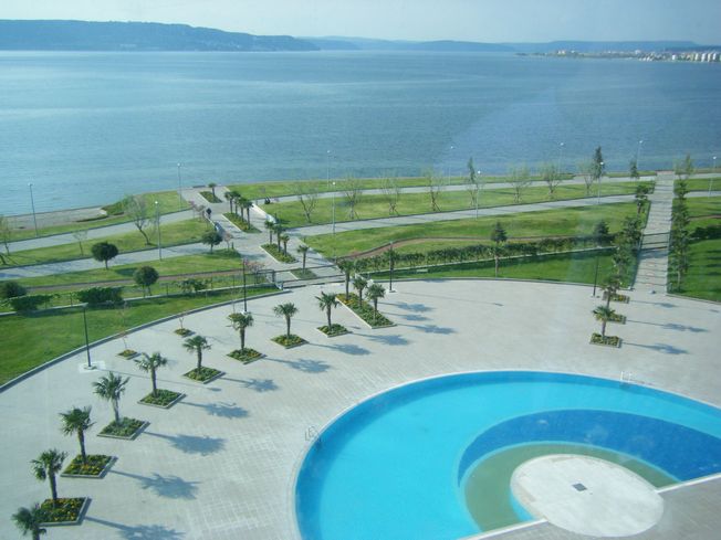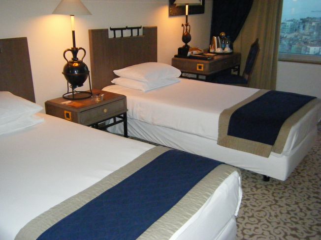 旧市街中心部、タクシム広場の前にある、ホテル マルマラ。窓からは、アジアサイドに、ブルーモスク、アヤソフィアなど、また、マルマラ海を挟んでヨーロッパサイドを眺めることができます