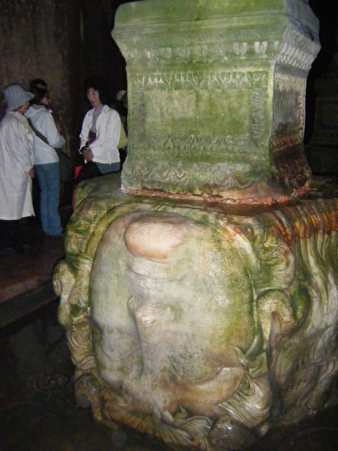 魔除けとして門柱などに据えられることが多かったらしく、この地下宮殿の魔除けとして、逆さと横向きの2本のメドゥーサの首があります。