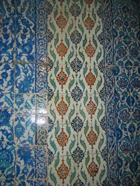 イスラム教は、偶像崇拝を禁止しているので、チューリップやユリや果物などがタイルに描かれ、それが無数に張り巡らされています。