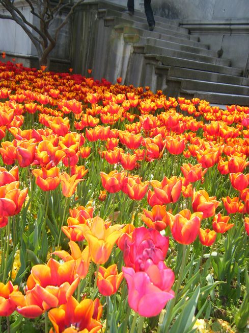春の短いイスタンブール。チューリップが咲いているのは一年で2~3週間だそうで、ガイドさんは、私たちがイスタンブールに入るころにはとっくに散っているだろうとおもっていたらしいんだけど、寒の戻りや天候の悪さに助けられ、私たちをまっていてくれたのでした。