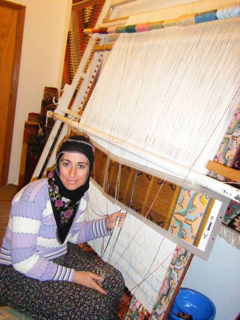 そんな気球を横目に、私たちはカッパドキアのじゅうたん工場見学にでかけます。