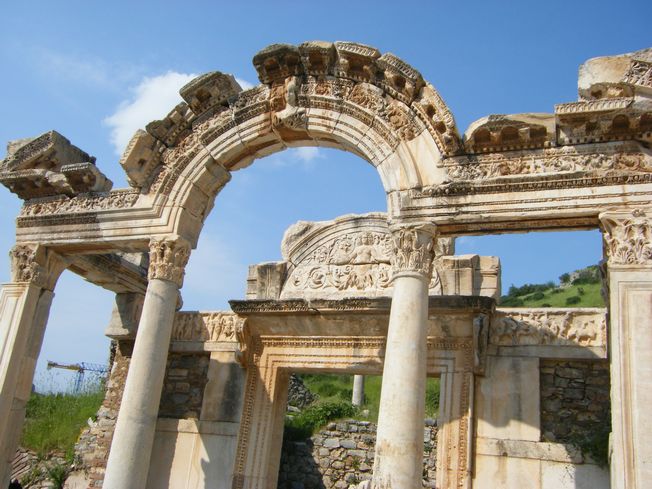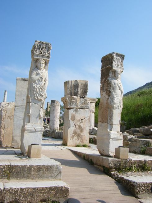 エフェスは紀元前11世紀、イオニア人による都市国家が成立、その後紀元前2世紀ごろにはローマ帝国の属領となり、ローマ、アレクサンドリアについで、3番目に人口の多い町だったとか。紀元前33年には、クレオパトラがローマのアントニウスを助けるために上陸して、つかの間の甘いひと時をすごしたとかいう伝説も残る。