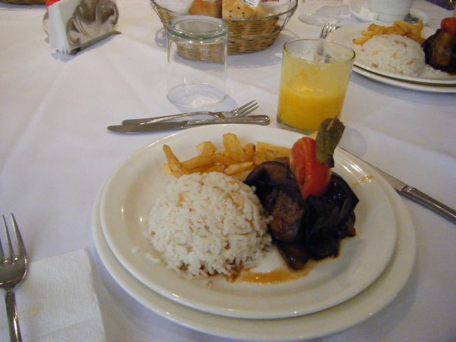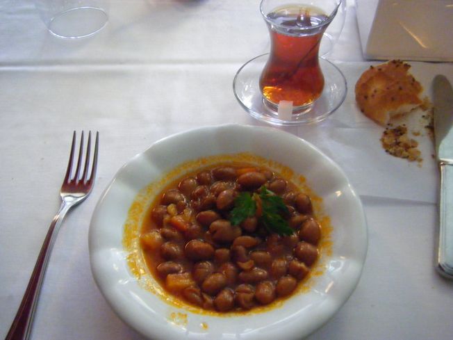 白いんげん豆を、トマトスープとオリーブオイルに浸したもの。トルコではかなり人気のある代表料理みたい。確かにおいしいけど、トマトスープのあとに、ものすごく味の似たピラキが出てくる^^