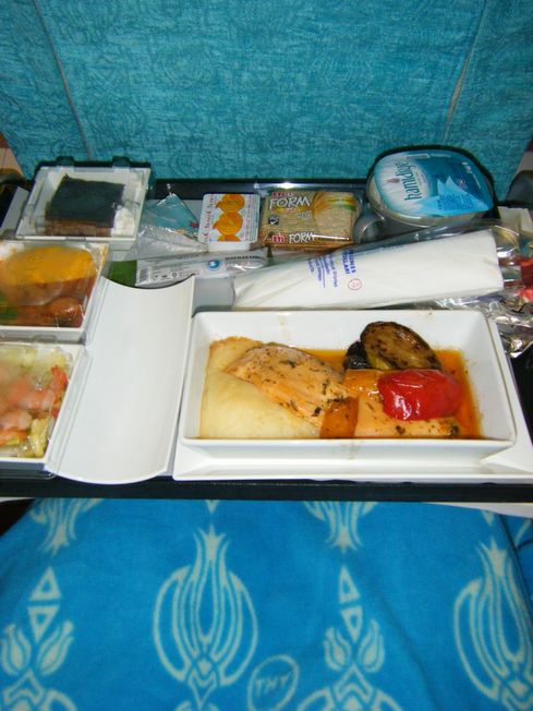 機内食はなかなかおいしいです。
