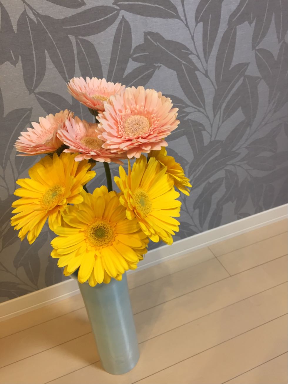 午後9時前、ショッピングモールの花屋、閉店間際のガーベラたち。