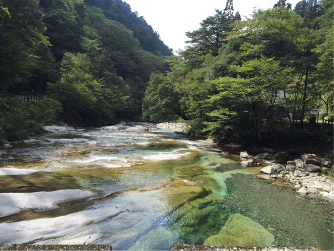 面河渓(おもごけい) 岩が青いのでしょうか、水が澄んでいてきれい
