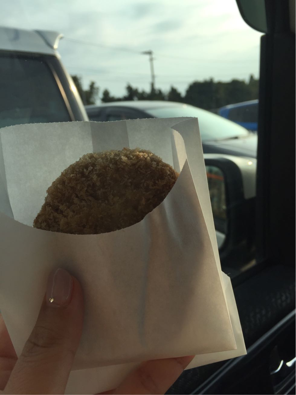 行きしなに食べたじゃこ天に、パン粉をつけて揚げたもの