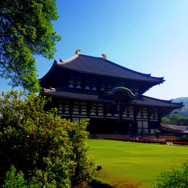 南大門を抜けて、まずは大仏殿(国宝 江戸時代)へ。いい天気。